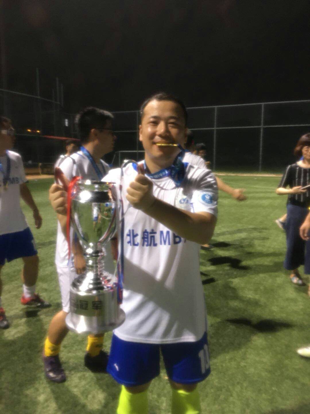 @北航EMBA青根木:作为受过专业足球训练的草原来的孩子,第一次完整的参加M超就能获得冠军的体验十分美好。有人说我是球队核心,但是足球是一个团队运动,我只是尽力奉献出最好的自己,感谢大家共同的付出,我为北航自豪!
