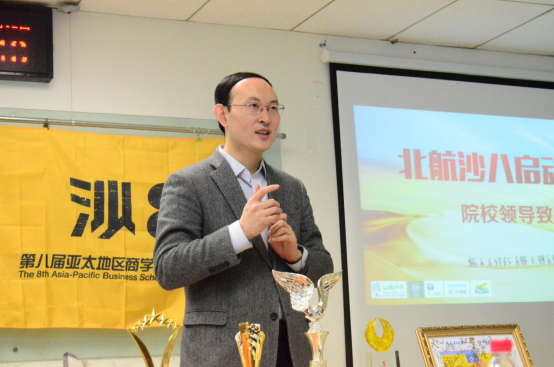 此次沙八启动仪式得到了院校的大力支持,北航校友总会秘书长王有洪老师、北航经管学院副院长秦中峰老师代表学校给沙八预备队员鼓劲加油,希望北航亚沙战队再创佳绩。