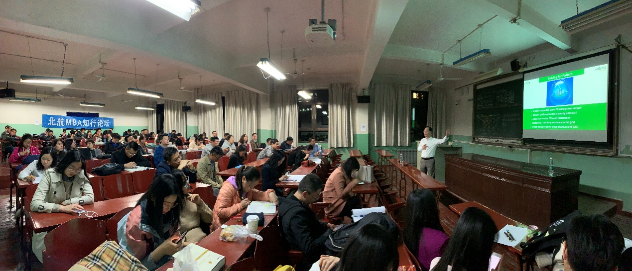 10月30日19:00,北航MBA教育中心在一号教学楼212教室顺利举办了最新一期知行论坛。本次论坛邀请到了哈德斯菲尔德大学能源与动力系统客座教授刘雄伟教授,为同学们做了《能源可持续性发展》的科普公开课。