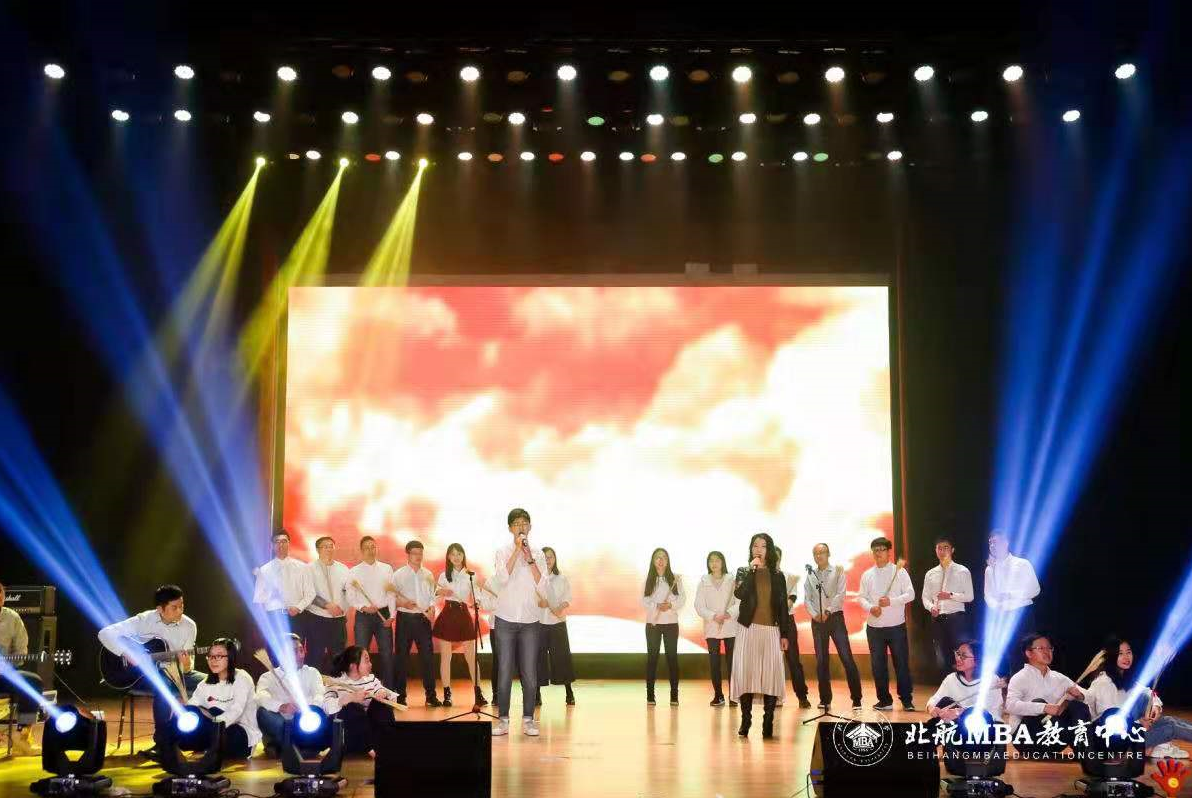 舞蹈《It’s my good time》展现了同学们的热情与青春活力,别出心裁的歌舞《红昭愿》、老上海风韵的《花样年华》彰显了女性的力度与柔美。北理与北航校友共同演绎《北航欢迎你》,体现了MBA校友一家亲的和谐。话剧《猫的北航》以独特的视角诉说了梦想的伟大,书法表演《今日书法》展现出中国五千年文化传承符号的魅力,方言版朗诵《祝酒歌》用严肃不失活泼的方式为大家带来了独特的祝酒体验,博得了满场欢笑的《不再犹豫》,音乐剧《开学第一天》用表演唱的形式带领大家回顾了那些年的青葱岁月。《淘汰》、《一如少年你》、空中花园乐队带来的《嘿姑娘》、《Sweet Child O Mine》等歌曲献唱时而悠扬,时而激昂,动听的歌声引领着着现场观众的情绪。更有大合唱《我和我的祖国》、《我爱你中国》表达着北航学子对祖国母亲的热爱,也是他们对祖国母亲70周年华诞的献礼,祝福伟大祖国繁荣昌盛!