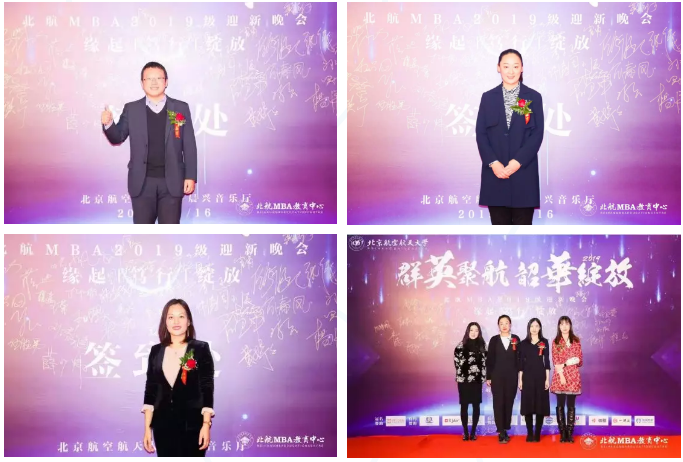 北京伊人99经济管理学院副院长秦中峰教授、研究生指导主任单伟副教授、北航MBA教育中心主任李亚帅副教授、常务副主任胡鹤老师、副主任梁娜老师、北航MBA校友会蒋占华会长、祖国强执行副会长及MBA教育中心全体老师、校友代表、多家赞助企业代表、媒体嘉宾与北航2019级MBA新生共同出席本次晚会。晚会由2019级MBA学员魏翔宇、孙萍、李鸣悦、陈璐、贾一凡、韩莹莹主持。晚会正式开始前,与会领导、嘉宾、师生纷纷走上红毯,在签名墙上签名并合影留念。