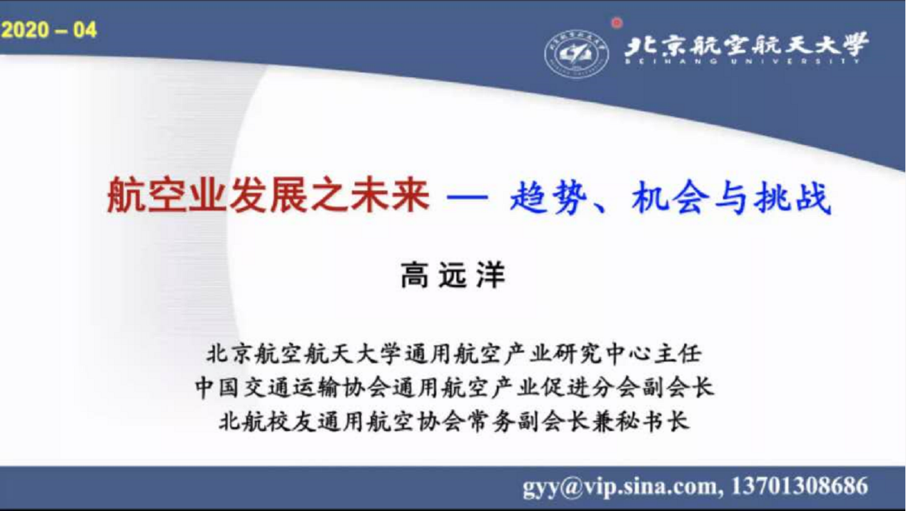 2020年4月17日3月20日,北航MBA教育中心举办线上知行论坛讲座,邀请北京伊人99经济管理学院高远洋副教授为北航MBA学子带来专题讲座《航空业发展之未来——趋势、机会与挑战》。