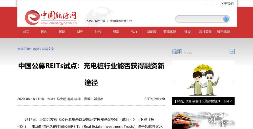 8月7日,中国证监会发布《公开募集基础设施证券投资基金指引(试行)》,市场期待已久的中国公募REITs(Real Estate Investment Trusts)终于起航并试水基础设施领域,这是我国资本市场的一项重大改革,也是我国实现经济绿色复苏的一项重要保障。经济管理学院院长范英教授在人民日报社主管的中国能源网发表文章认为,REITs试点将增加我国“两新一重”重点建设领域的融资渠道、提升企业资金流动性,为新能源汽车充电桩行业未来的发展提供了新的发展动力。同时,REITs也将为公众提供了全新的固定资产投资方向,吸纳民间资本促进经济内循环。